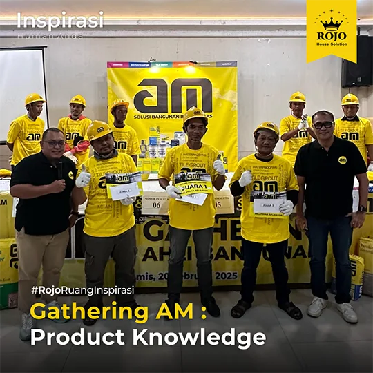 Rojo House Solution bekerja sama dengan AM dalam pelaksanaan gathering yang diadakan di Tirai Bamboe Restaurant pada tanggal 20 Februari 2025. Gathering ini bertujuan untuk memperkenalkan produk baru dari AM serta seluruh rangkaian produk semen instan dan pelapis anti bocor. Pada gathering ini juga terdapat perlombaan yang menarik yaitu merekatkan keramik menggunakan produk dari AM.