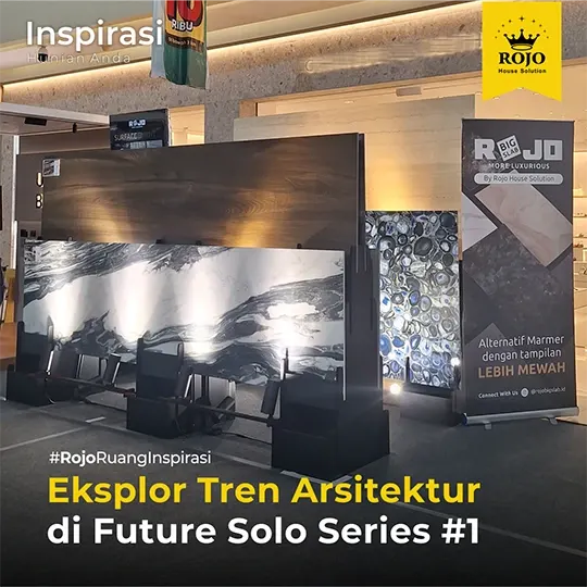 Sedangkan Rojo Big Slab memperkenalkan detail produk mulai dari bahan baku, pilihan permukaan dan ukuran slab hingga informasi mengenai produk baru yang akan hadir di Rojo House Solution. Ikuti terus sosial media Rojo House Solution untuk mendapatkan informasi terbaru mengenai produk bahan bangunan.